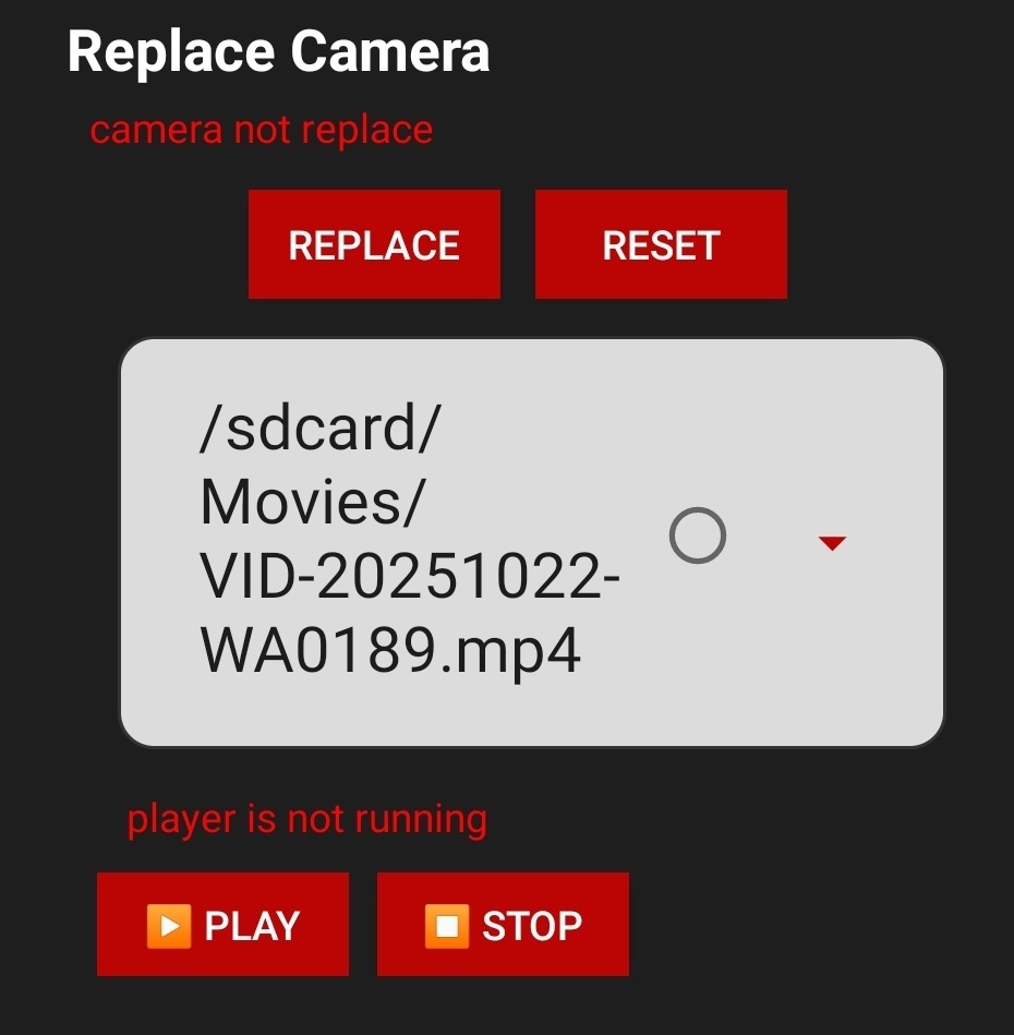 Carregue qualquer video de sua galeria para substituir sua camera Android.